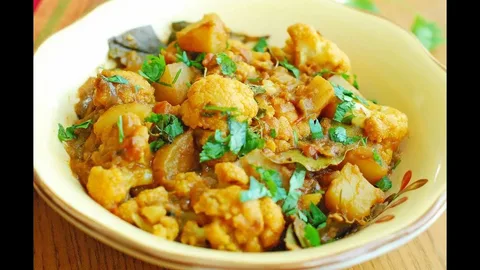 Cauliflower and potatoes in a dry masala—earthy, crisp, and utterly comforting.