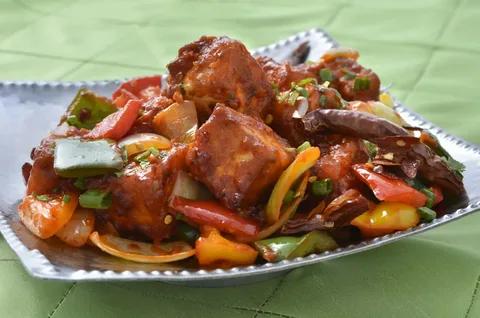 Crispy paneer in a spicy, tangy sauce—street-style heat meets comfort food.