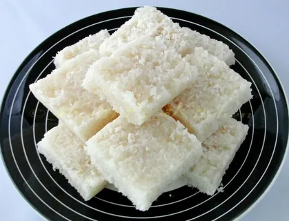 Delicate coconut fudge with a touch of cardamom, topped with nuts —sweet, nutty, and timeless.