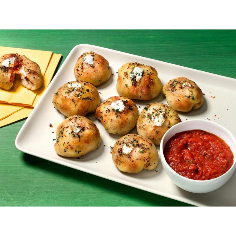 Cheese-filled dough balls with a zesty sauce inside—bursting with pizza flavor in every bite.